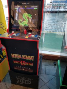 arcade machine on the cabinet and the included riser. Standing at just over 5’ tall (slightly below