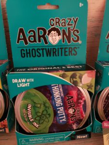 The GhostWriters was very awesome. It comes with this little light pen that actually draws on it. Then it disappears and you can write something new. I was truly impressed with it. The scented had nice soft scent that was soft and smelled fantastic. On both of these the putty was easy to play with and not sticky which I love.