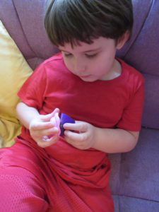 When you fold them up they are also a very cute Cupcake and even better they are scented. Little guy is special needs and scents calm him down. He sniffs everything. He has picked the mini to keep for himself. He loved to sniff the great scent and pop her up and down.