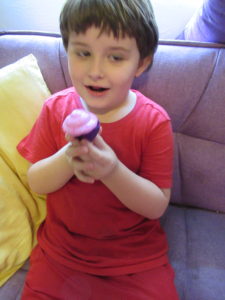 When you fold them up they are also a very cute Cupcake and even better they are scented. Little guy is special needs and scents calm him down. He sniffs everything. He has picked the mini to keep for himself. He loved to sniff the great scent and pop her up and down.