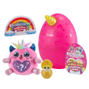 Rainbocorns Sparkle Heart Surprise Rainbocorns Sparkle Heart Surprise includes a Rainbocorn collectible with a unique gem heart! Pop the gem in your Rainbocorn or onto your bling ring, and swap your rainbocorn’s hearts and wings to create your own cute surprise! Find other surprises including boo-boocorns, rainbocorn poop and much more in every pack! Ages 3+, two-pack SRP $4.99; four-pack SRP $9.99. Available at Amazon, Walmart and Target.