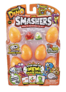 Surprise Toy Filled Eggs Smashers Series 3: Dino It’s time to go back to the land before time… with Smashers Series 3 DINO! Explore the Jurassic world of the wackiest Dinosaurs you’ll ever meet. Smash open the NEW Smash Egg to find what’s crawling inside with over 100+ dinosaur characters to collect! Or, get down n’ dino with the new SMASH REX playset! Lift his tail to bite down on your Smash Eggs, then press down on the egg shell to SMASH & POOP out your Dino Smashers! Smash your Smashers on the ground, to the wall or anywhere you can think and start building your Smashers collection today! The smashing will never end!