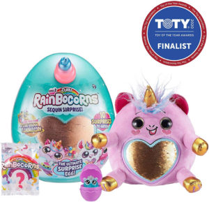 Rainbocorns Sequin Surprise Series 2 Plush – The Ultimate Surprise Egg The Ultimate Surprise Egg features 10 layers of surprises from the collectible r ainbocornegg, the scented plush, a reversible sequin heart accessory, a hatching certificate, charm bracelet Rainbocorn Poop compound and more. Age 3+, SRP $24.99. Available at Amazon and Target.