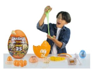Dino Smashers Epic Egg Unwrap the shrink-wrap and smash open the giant egg! Use the scratch n’ reveal map to start your journey and discover clues to find the fossils inside! Includes: Epic dino egg, dino scratch map, dino yolk egg bag, 5 compounds, digging tool, exclusive smash-o-saur, 6x smash eggs and smash egg rebuilder for tons more dino fun! Ages 4+, SRP: $24.99. Available at Amazon, Walmart and Target.