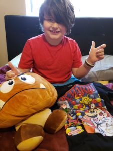 It is so funny I wanted to do a whole unboxing video for you guys with little guy. Yet you know how he is and today he informed me he does not make videos on Tuesday. lol I said how about a few pictures he said NO. Then I said but its Dr. Mario World then he came around, he even out a shirt on for pictures. lol