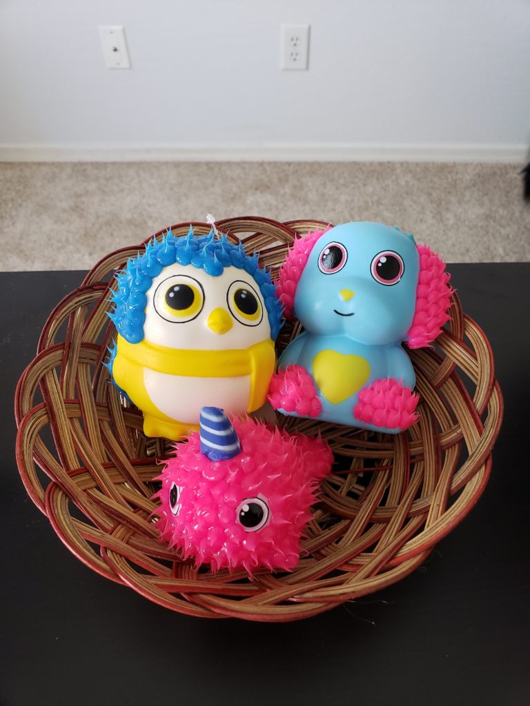 They also have some texture to them. There is so much to them they will be squishing away for a while. I love the fact that they can pick different charters so not just a texture thing its also a visual sensory for them too. If you have not checked out Drop Dots from KESS toys I would 100% recommend them.