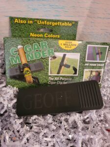I have a cigar over and his name is never found on anything. I love the idea of giving him a cigar holder for when he is playing golf and it is even personalized. Groovy Guy Gifts has a wide selection of golf and cigar gifts that are at a great price. The Cigar Minder can hold his cigar while golfing and even clips to the cart for when he has to put it down.