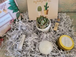 I love that they have awesome gift for any occasion. They have gift boxes and other amazing gifts. I have never gotten anything from them that was not amazing. This one is part of the Brides Maids Gift Boutique The Succer Gift Box is amazing. It has everything for not only a bridesmaid gift , it also makes for a perfect Easter Basket. Each box comes with a succulent, a hand-poured soy candle, and a jar of matches. All with a personalized note so you can let her know how much she means to you.