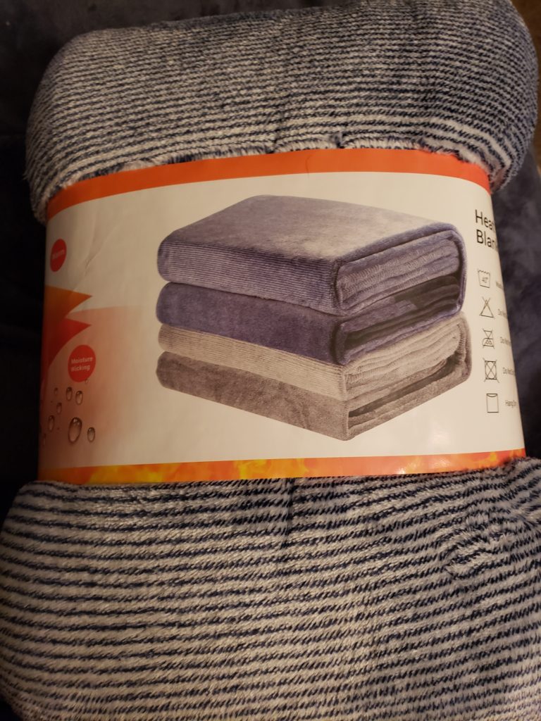 Now for even more awesome news this is a warming blanket which I have wanted for awhile. My problem is with the puppies I never wanted cords hanging down while I sleep. I love that this blanket is a cord free warming blanket. For those of you wondering YES is actually does keep you warm and toasty. The blanket uses warm heat