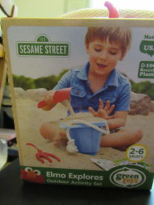 Elmo Explores this is a cute set for my son to dig and have fun in the backyard. It comes with a bucket, rake, and shovel. He can now dig around the back yard and have fun discovering everything new.
