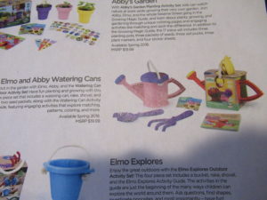 Elmo and Abby Watering cans this is a cute set to go along wit Abby’s garden set. A must for any gardener in your life.