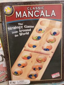 Now while I would love to tell you the rules of this game it really is complicated until you start playing. Once you start it is easy . I know does not tell you much, Each person gets a side then you start where you want to on your side and drop one into each opening till you get to your last one. Then the rules change depending on who’s side you land on and if the space is full or empty.