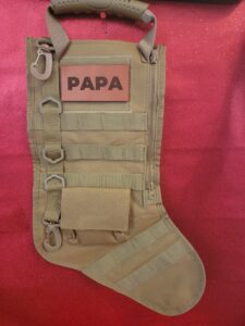 When i saw this the first thing I thought of id my dad must have this. This is not only a durable stocking but I can put his gif right inside and it makes a awesome gift bag that he can use again and again. Our tactical Christmas stockings can be re-purposed as magazine drop pouches and are MOLLE-style which is used to define the current generation of load-bearing equipment used by the U.S. military and other NATO members i.e. covered with rows of heavy-duty nylon loops that you can attach pretty much anything to. It comes with a leather patch where you can personalize it with your name/message.