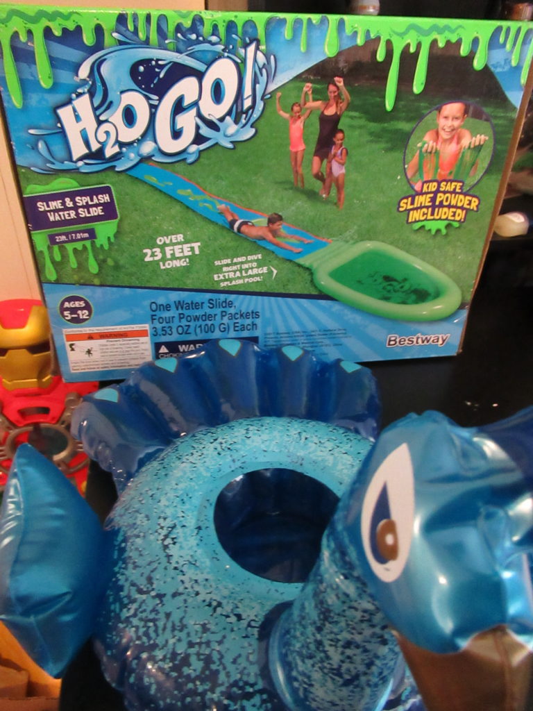 When I walked into Sweet Suite this year and saw H2O GO I was so excited. I love great outdoor toys. As you can see we had a blast in their booth, how cute is the paradactyl. When I showed my son the pictures of the products he went nuts for the Slime Slide. Then he called my nephews and they all insisted that We had to get it.