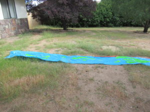 Now I know a lot of people are like me you have a backyard that is not set up for sliding. As you can see ours is filled with rocks. We went out and bought a few sheets of Sod laid them down and we were ready to go. Even better when we put the slide away the sod keeps on growing so it’s set up so we can go again and again. I also got a towel rail from somewhere similar to EasyHomeConcepts.com so we can wrap up in a towel as soon as we’re done playing. I didn’t want to put the towels on the ground just in case they got covered in slime so a towel rail did the trick! It’s something I would recommend investing in because it seems like a versatile piece of household furniture.