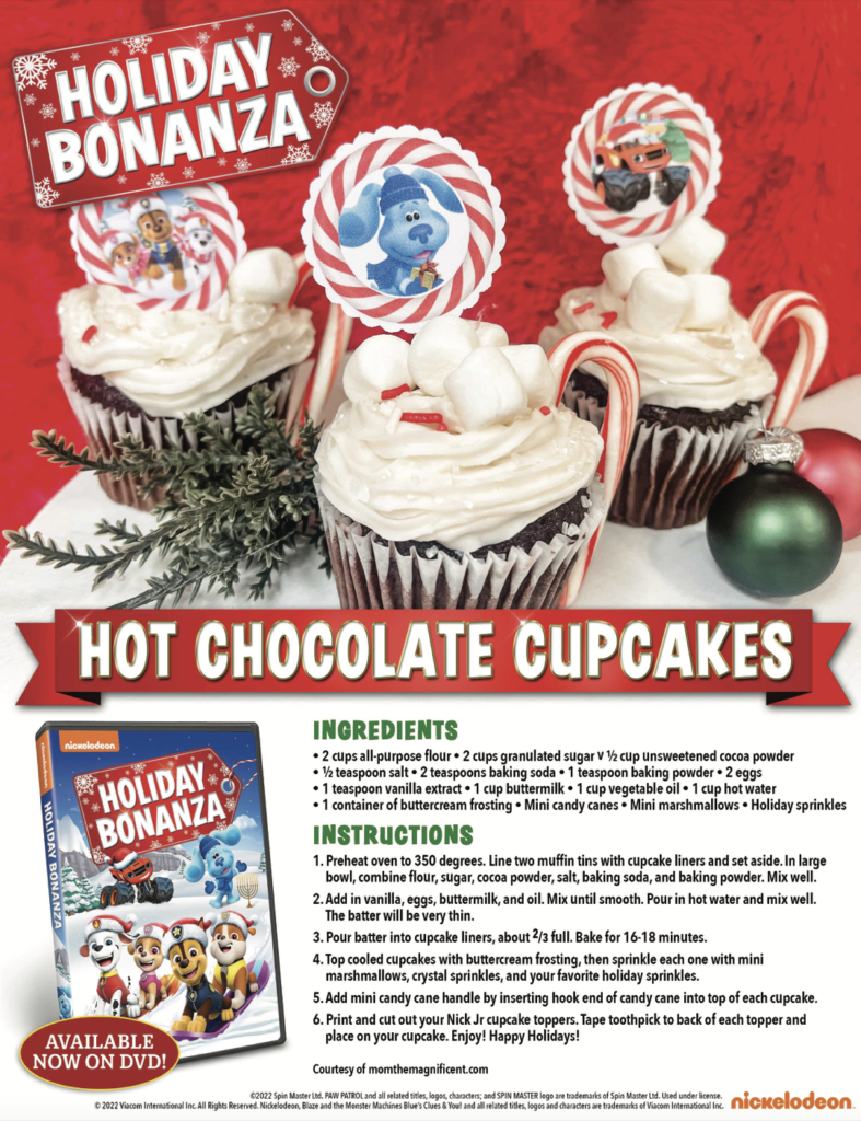 Make your holiday full of warmth and cheer! Check out this delicious recipe for some Hot Chocolate Cupcakes inspired by Nick Jr Holiday Bonanza, available now on DVD! Click the link to join the fun