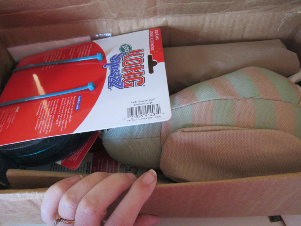 I was so excited when I found out that Kong now dose boxes. For one very low reasonable price you can get your very own box of Kong toys for your furry friend.