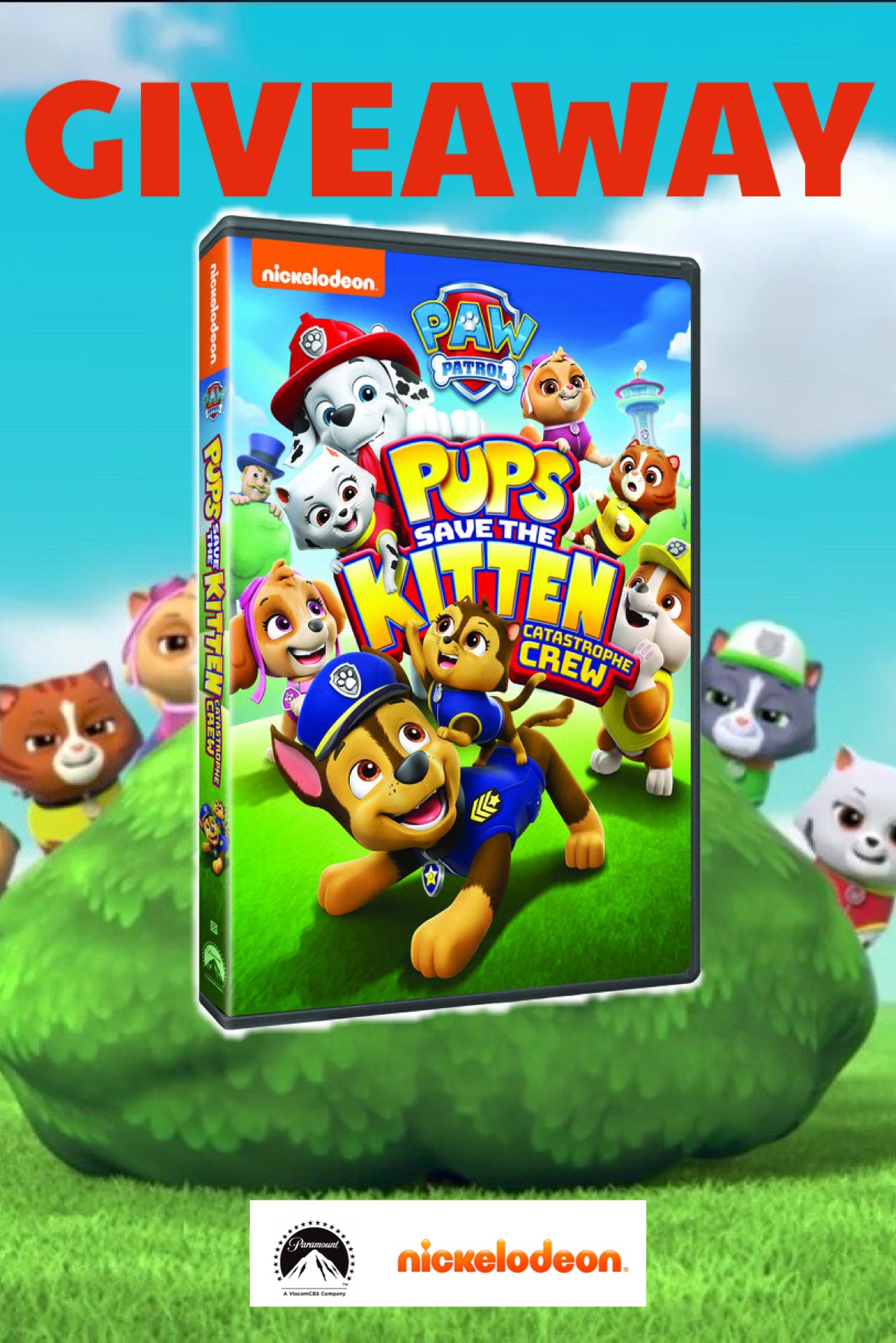 Two winners will each receive  PAW Patrol: Pups Save the Kitten Catastrophe Crew (RV $10.99). See below for terms and conditions. Open to U.S. residents of the 48 contiguous United States. You must be 18 years old to enter to win. This giveaway ends at 11:59 PM EST on 10.1.21