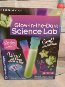 Little guy loves a great science project.  Even better he loves things that glow in the dark.  This Science lab is perfect for a great day of fun and learning and comes with the stuff to do 5 different projects. Mix up a glowing solution to make your own glow sticks. Observe your glowing creations under a UV flashlight (a blacklight). Learn about light, phosphosporecence, and glowing materials. Includes two glowing pigments, UV flashlight, glow-in-the-dark star stickers, plaster for chalk, and tools and instructions. The box doubles as a blacklight showcase. Thames and Kosmos has a wide range of Stem projects for your little ones and even your big ones.  They are fun and have easy to use directions .