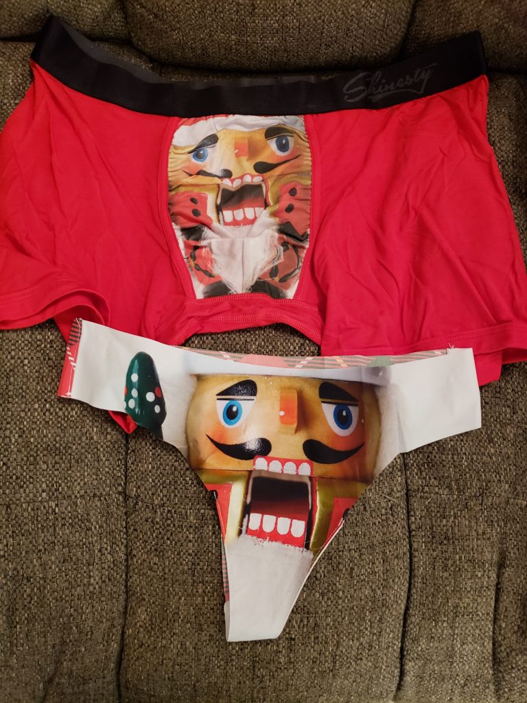 The Underwear are adorable and they are matching you guys can be so cute together this yer. The nutcrackers are funny and the snowflake matching are adorable.