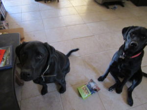 It took me forever to get Apple and Thor to sit and take a picture. They wanted the goodies so bad.