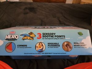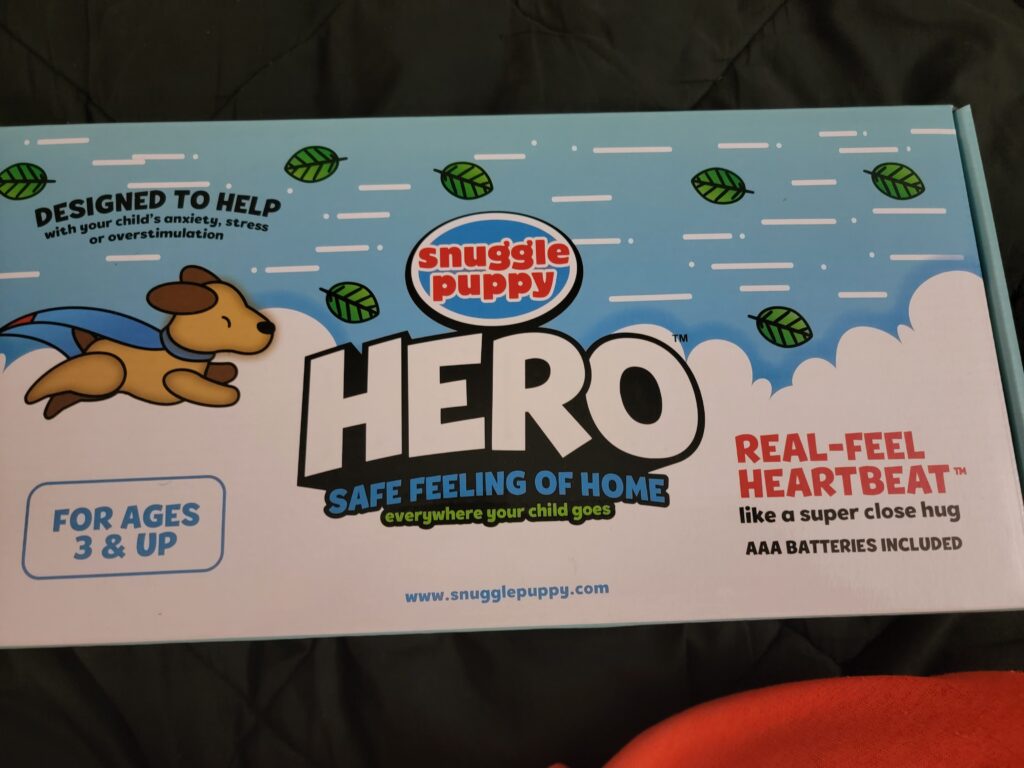 As most of you know I have a wonderful autistic little guy. One thing we have always done for him is make sure he has a safe place and that bed time is always a place he can relax. He loved his puppies, but they are anything but relaxing to him. Snuggle Puppy Hero was perfect for him. He has a puppy friend that helps clam’s him down and he can snuggle with.