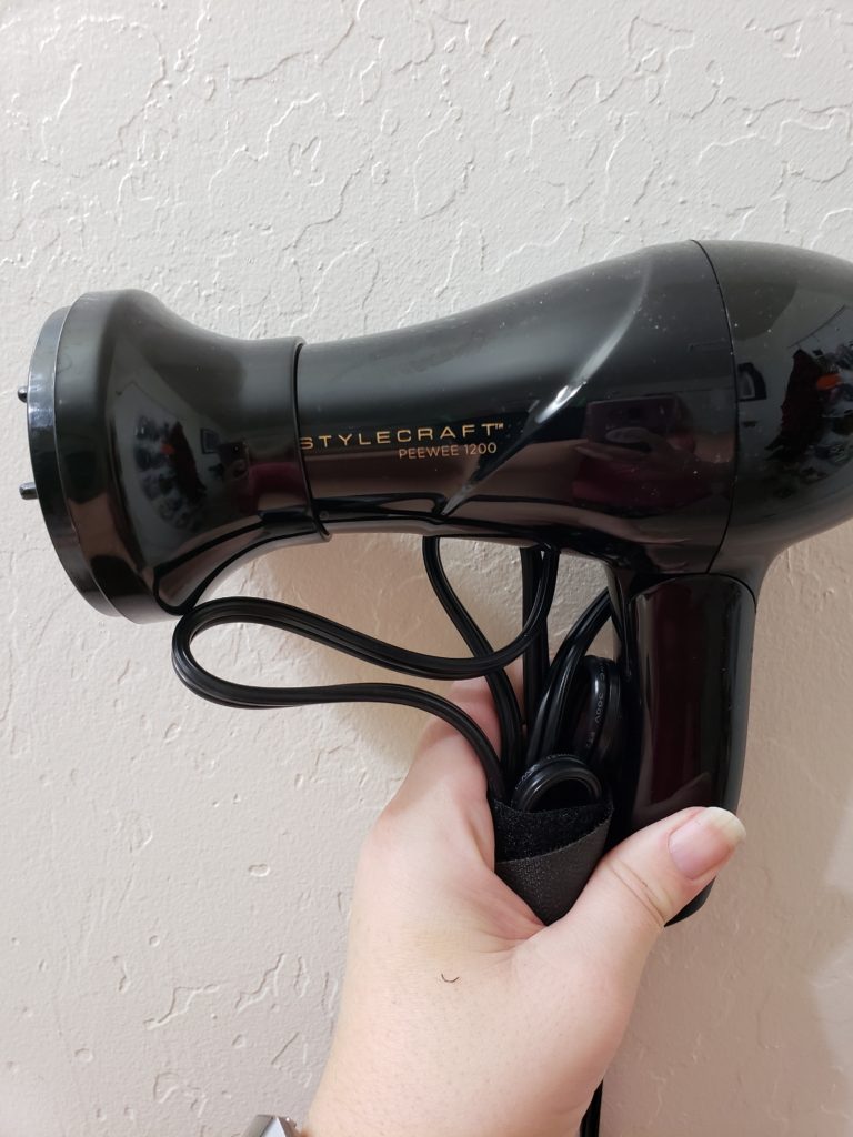 First thing I tries with the PeeWee 1200 Foldable Handle Dryer is I washed my hair and got to drying. The first time I used it I used no other products and no heat protector. I wanted to see how the dryer did on its own. I loved that even though this is portable it also came with attachments for diffusing my hair. Most little portable ones do not come with these. It also came with a travel bag which you all know I love a travel bag.