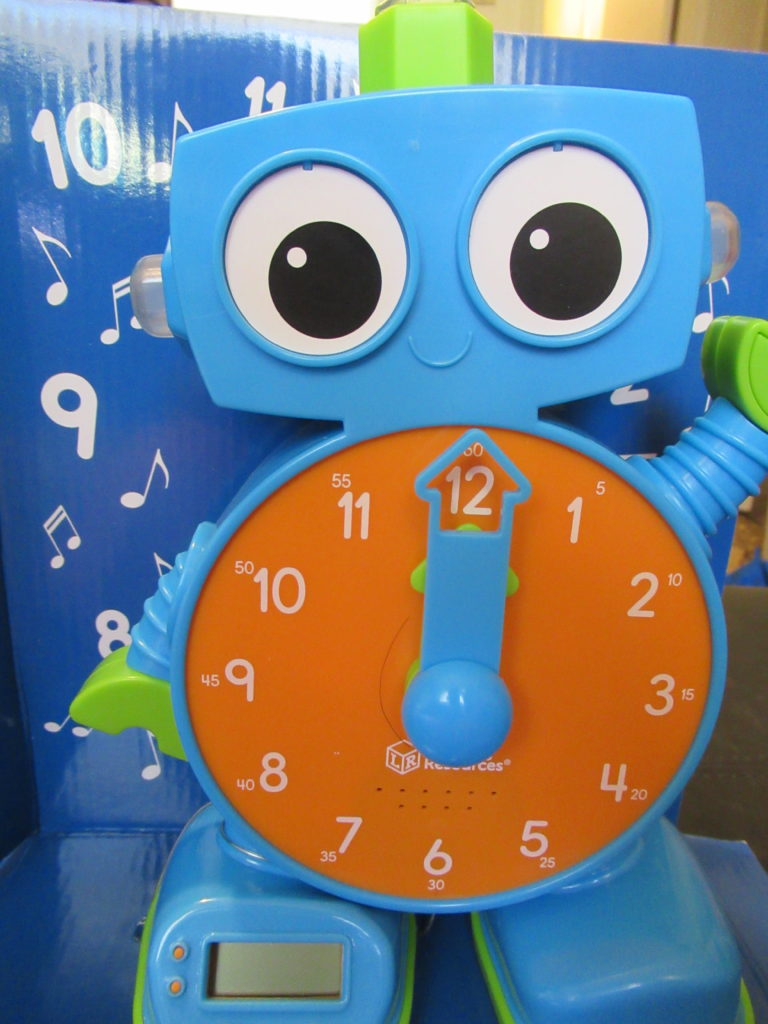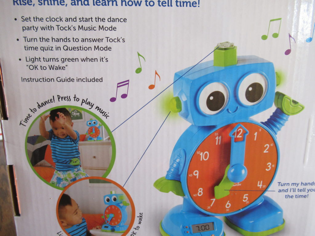 If you have a little one who is learning to read a clock? The Tock the Learning Clock is exactly what you need. This clock will not only help teach your little one to read a clock, but he is also fun, you have the normal clock face, the digital clock and If you turn his hands he will tell you what time it is.