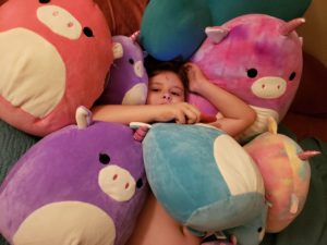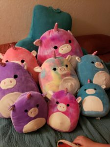 Squishmallows are a fan favorite.  i did not know when i fell in love wit them that there are collectors all over the world in love with them.  They are squishy soft and fun.  As you can see they come in all sizes and colors.  These Unicorns are some of our family favorites.  They huge size is perfect for a bring along buddy/pillow.  Squishmallows are available at Walgreens, Amazon, 5 Below, Costco and more