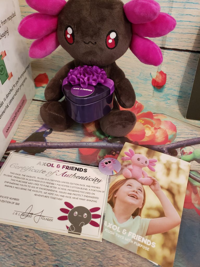 They sell these plush toys to spread awareness about endangered species and raise revenue. At the moment we have Axol the axolotl, and soon will include Java the pangolin, his best friend! In addition, we donate many of our plushies to be companions for children going through hard times.