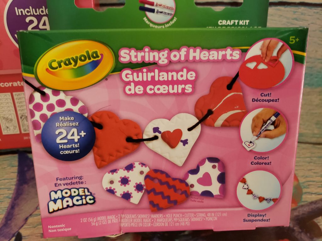 The Crayola String Of Hearts is so much fun to decorate out home with.  This was a more hands on for our little guy.  This set makes 24 hearts that can be decorated and strung together.  This is also a great sensory activity for your little ones. It comes with the clay the pens, string, and the mold.