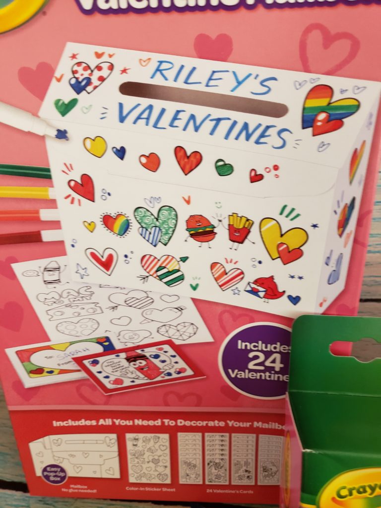 Crayola is one of our favorite company’s.  They have the perfect products for so many holidays.   Every Valentines day little guys school leaves it till the last minute to tell me if they are doing anything.  It is now 3 days before Valentines day and they are sending home a list of names and whats allowed and what not today.  Nothing like leaving no time to get it done right.