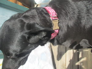 I love that they even had a matching leash to go with the collar. As you can see Apples Mommy Willow is modeling the leash and collar. Apple is only 8 weeks so she has to grow into the collar. It is also adjustable so it can grow with her. We love how the red checkered looks against the dark black fur she just looks fantastic.